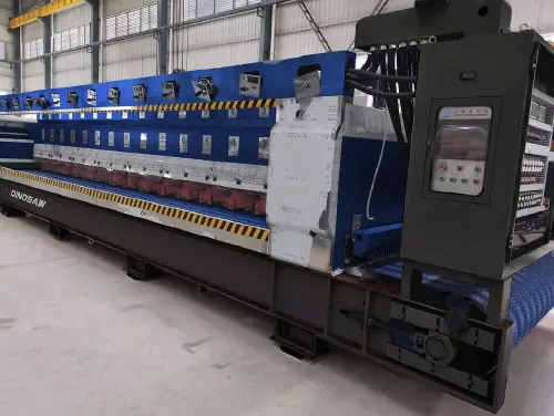 The most efficient approach uses multi-head polishing machines with 8-24 polishing heads working simultaneously through programmed sequences. This system replaces traditional manual polishing (where operators control a single grinding head) and single-head machines (requiring manual abrasive changes between stages). The PLC-controlled process ensures consistent pressure, speed, and abrasive progression across every slab, delivering uniform quality impossible with manual methods.