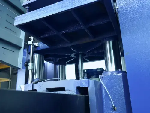 Solid guide columns and hydraulic control minimize vibration for stable cutting results