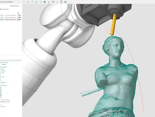All-in-one software (CAD+CAM+OLP) with integrated 3D scanning automates complex carving processes
