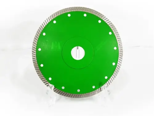 A thin-kerf disc is the preferred choice for high-density, brittle materials like porcelain, sintered stone, and vitrified tiles, as it minimizes the risk of chipping.