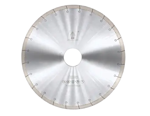 For dense, abrasive vitrified tiles, matched sintered bond hardness, rigid core, wet cutting and correct RPM/linear speed keep the kerf straight over long cuts and resist blade glazing. Maintain coolant flow to control heat. Benefit: stable kerf, high precision on large‑format tiles, consistent cutting speed and service life.