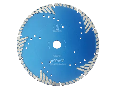 Turbo serrations sustain speed with reduced contact, and open segments evacuate fines; bevel teeth extend disc life on repetitive masonry cut‑offs using angle grinders.