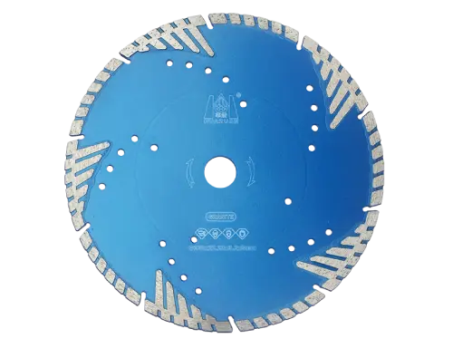 Turbo segmented diamond cutting disc accelerates debris removal and airflow cooling.