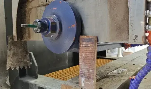 The safe RPM for a Ø600 mm blade in quartz varies by blade and material; consult the blade supplier’s chart and adjust to prevent scorching or chipping. Operating at too high an RPM can cause resin scorching and premature blade wear, while too low an RPM can lead to chipping.