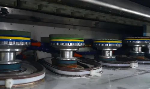Each spindle houses a high-power motor responsible for rotating a grinding or polishing wheel at optimal speed. While individual motor power is typically in the 1.5–3.0 kW per spindle range, the machine total power for a model like the LSMB-314/80 is 45 kW . Stability is critical to prevent vibration that could cause chipping or other surface imperfections.
