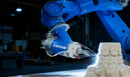 Analyse technique de la cellule robotique de sculpture sur pierre DINOSAW à 7 axes. Explorez son architecture, ses composants clés, ses paramètres de fonctionnement et la gestion des défaillances pour le granit, le marbre et le calcaire. Atteint une répétabilité de ±0,06 mm.