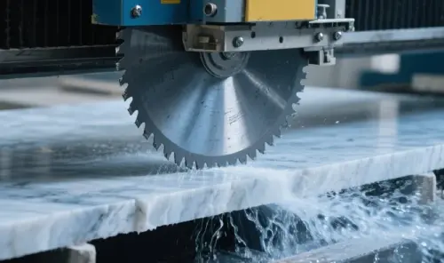 O quartzito é extremamente duro e exige enorme estabilidade para ser cortado de forma limpa. Se uma lâmina nova ainda causa lascas, o problema quase certamente é vibração da máquina. Uma máquina menos rígida permite que a lâmina "salte" em nível microscópico, fraturando os cristais da borda em vez de cortá-los.